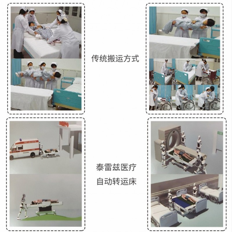 (1)无需人工,实现自主转移患者在不同科室床体之间全自动和半自动的转运。
